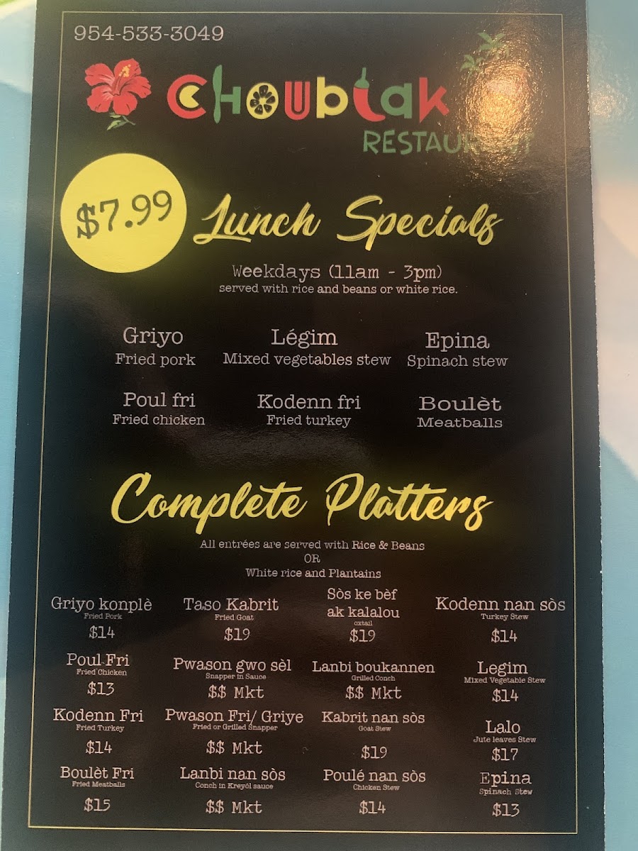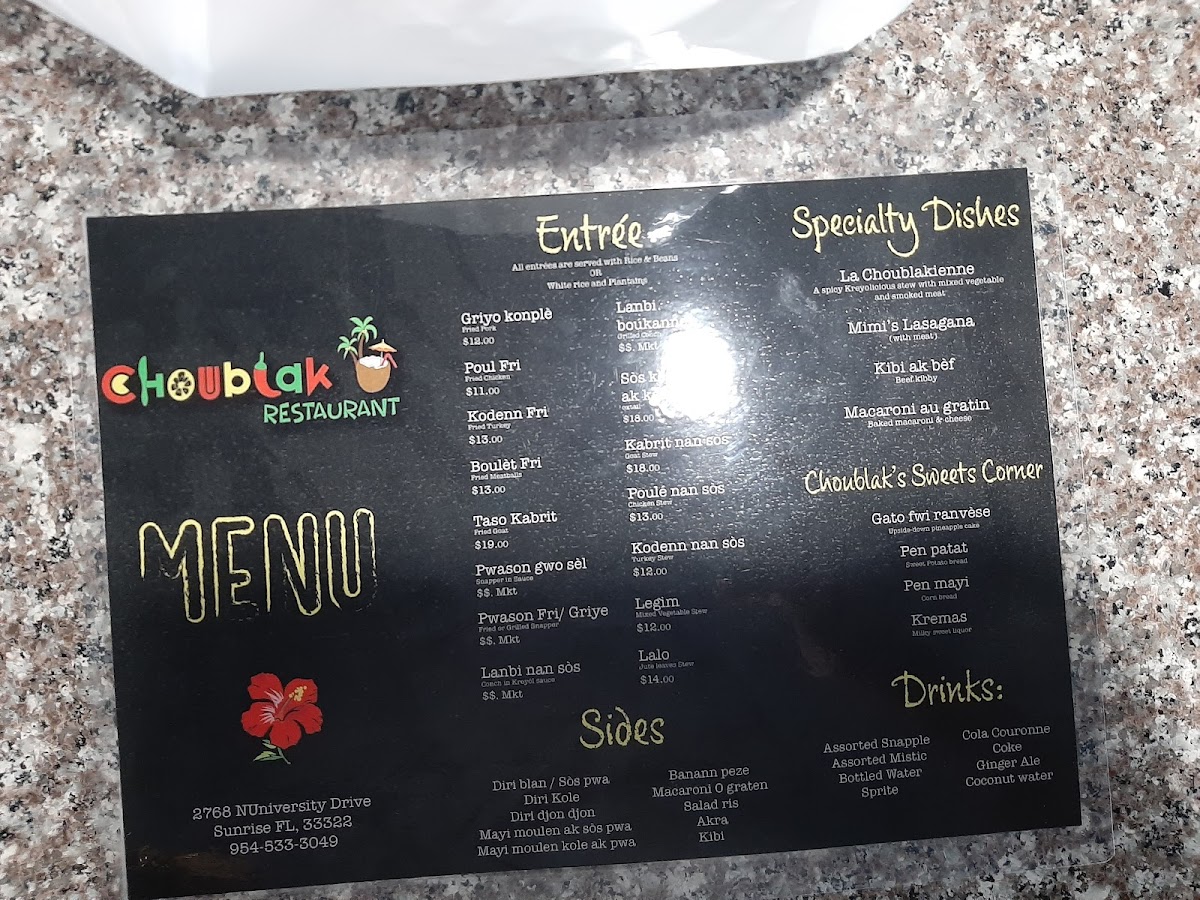 Welcome to Choublak Restaurant, a delightful culinary gem located at 2768 N University Dr, Sunrise, FL. This vibrant eatery specializes in authentic Haitian cuisine, enticing guests with a menu that highlights rich flavors and fresh ingredients.